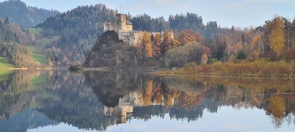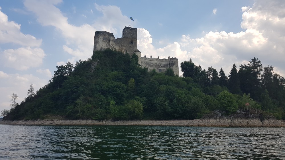 Zamek Czorsztyński położony na przeciwnym brzegu Jeziora Czorsztyńskiego. Dziś pozostały po nim malownicze ruiny.